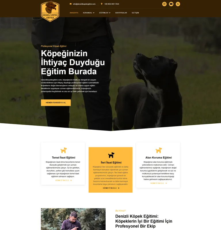 Köpek eğitim hizmetlerini tanıtmak amacıyla profesyonel web tasarım çözümleri için Denizli Köpek Eğitimi, Vudolix’i tercih etti.