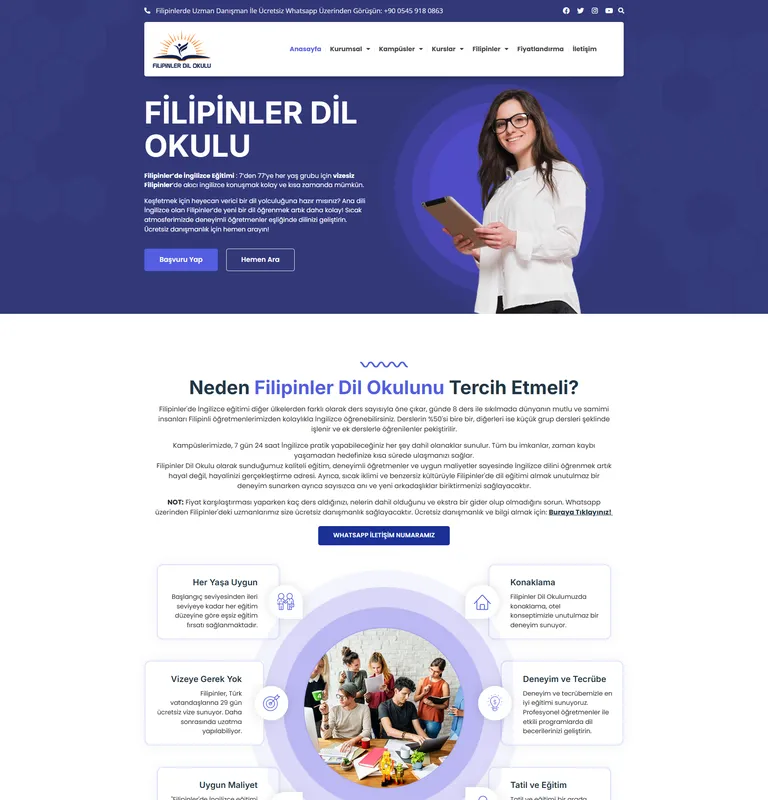 Dil eğitimi alanında profesyonel web tasarım çözümleri ile Filipinler Dil Okulu, dijital dünyada Vudolix’in uzmanlığına güvendi.